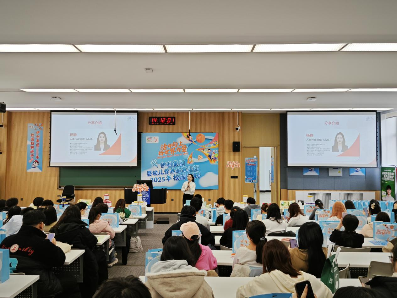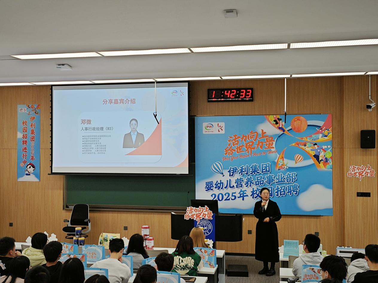 招聘宣讲会上,杨静讲述了从一名“吉大学子”到一名“伊利人”的成长故事,并结合企业实力、福利体系与用人标准三大板块内容,介绍了伊利集团的全球化战略、社会责任实践和行业竞争优势。针对学生关心的职业发展路径,重点介绍了薪酬福利、“三年专项培训体系”等职场人成长机制。