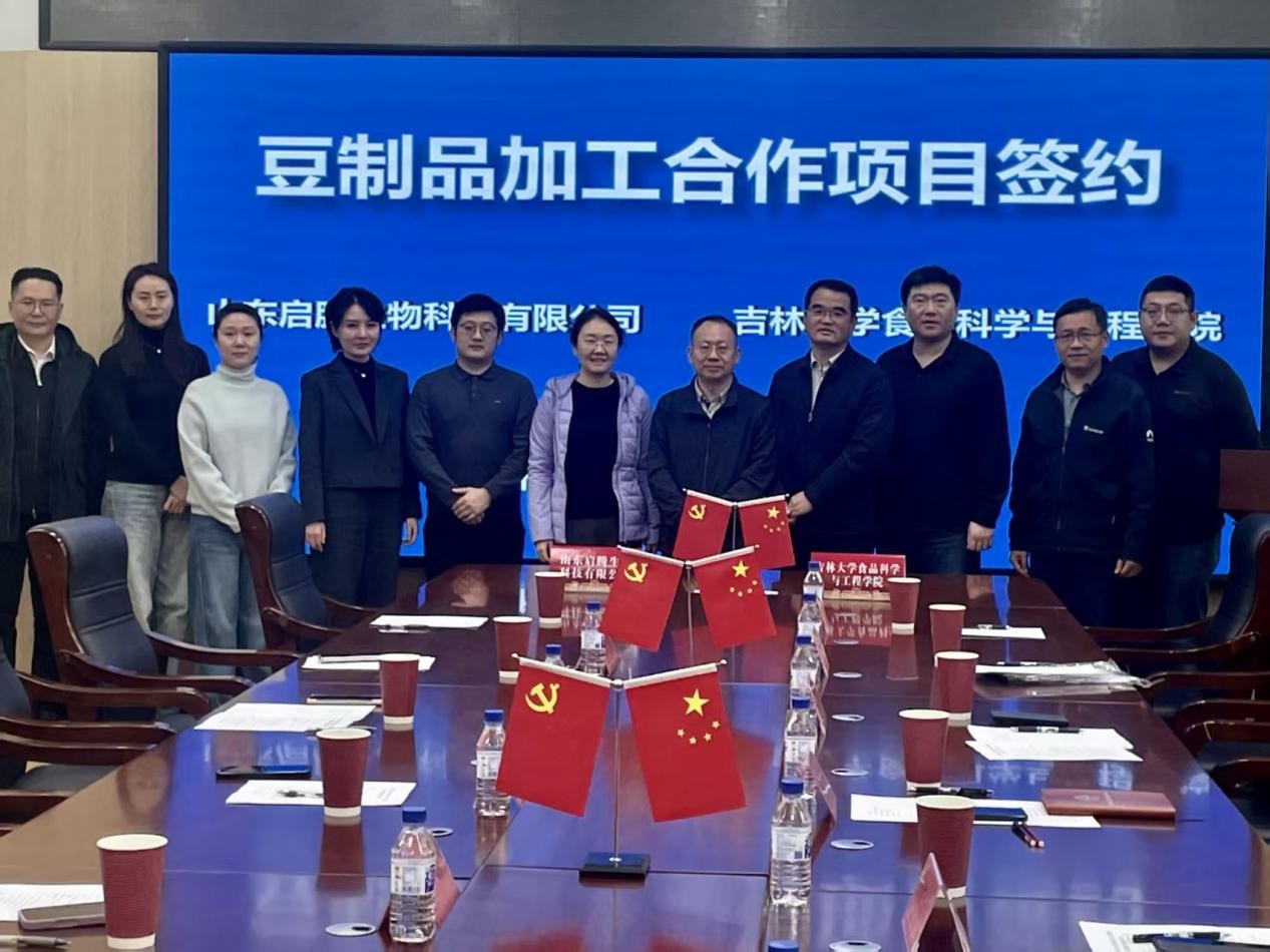 与启腾生物科技有限公司签署了豆制品加工项目合作协议。